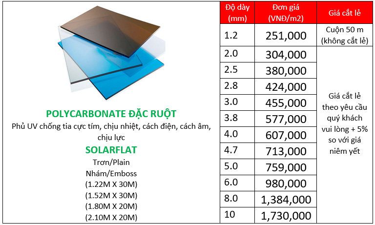 Bảng Giá Tấm Lợp Poly Đặc Ruột Mới Nhất